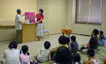 なつやすみおはなし会は、おかげ様で今年8回目を迎えました。第1部は41名、第2部は29名の参加がありました。ありがとうございました。今年のプログラムは、絵本やおはなしのほかに、パネルシアターや詩などもあり、バラエティに富んだ内容で、参加した皆様の笑顔がとても印象的な楽しいおはなし会になりました。これからも、このおはなし会を続けていきたいと思います。来年もぜひお越しください。