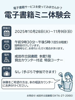 - 電子書籍ミニ体験会のご案内(2025(令和7)年10月29日(水曜日))