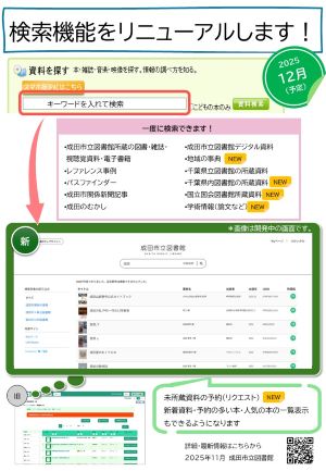 2.成田市立図書館に所蔵のない資料の予約(リクエスト)をインターネットから受け付けられるようになります。