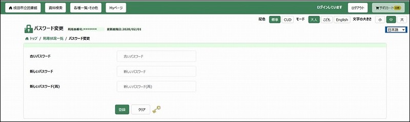 Myページの「パスワード変更」画面から行います。