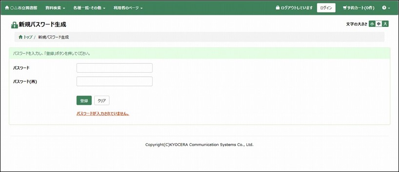 (3)図書館から送信されたメールのURLを選択し、新規パスワード生成画面からパスワードの再登録を行います。